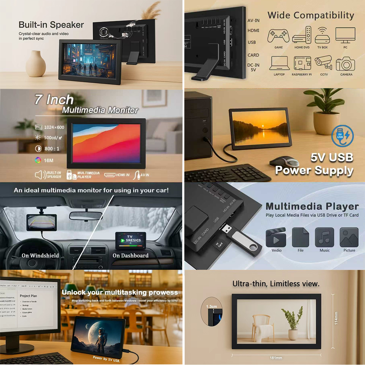 7″ Inches Portable LCD MultimediaTV Monitor / Mini TV with HDMI/USB/AV Input/Speaker- Car Display/PS3/PS4/Xbox/PC