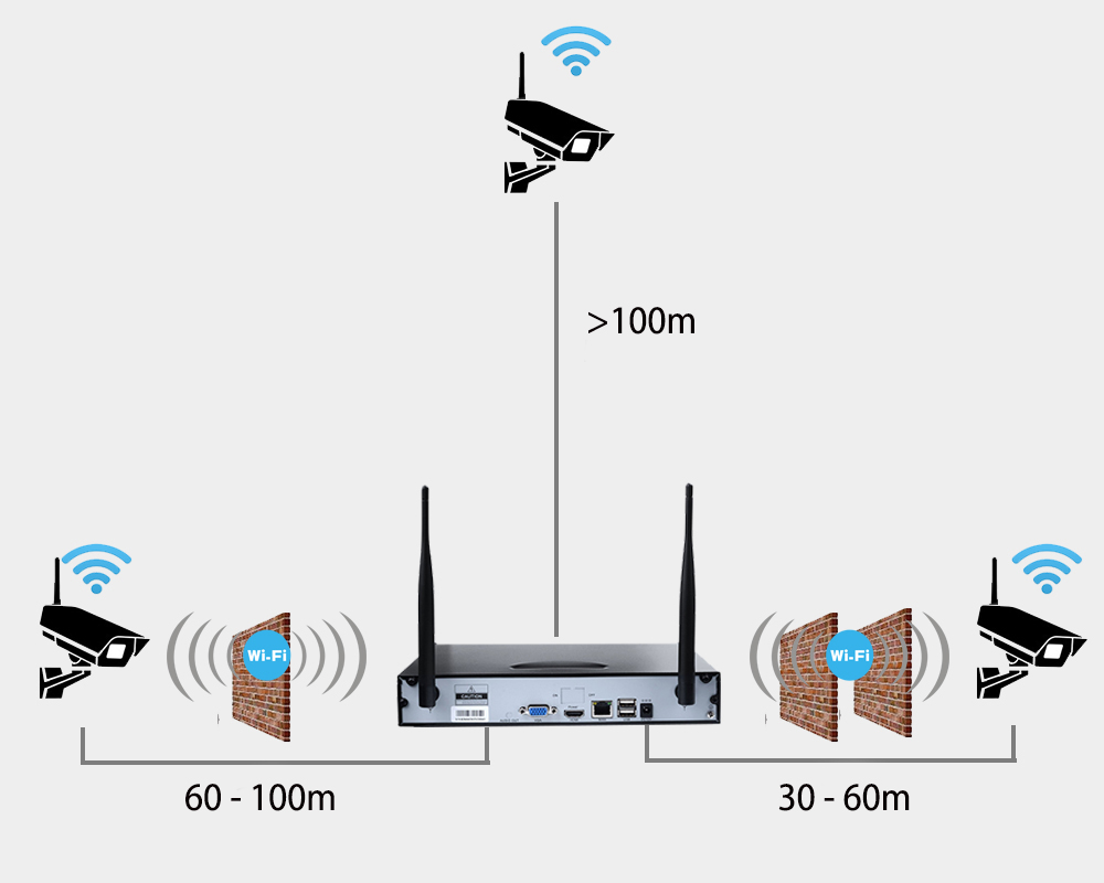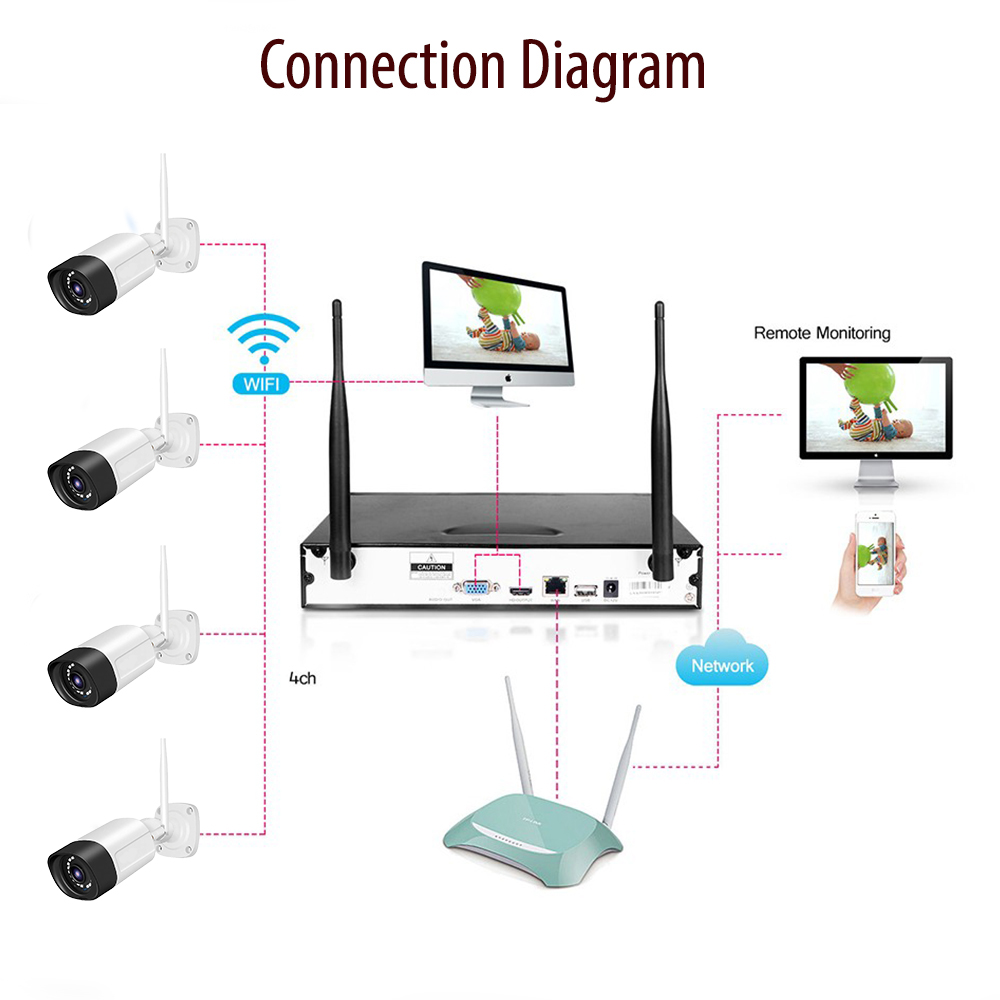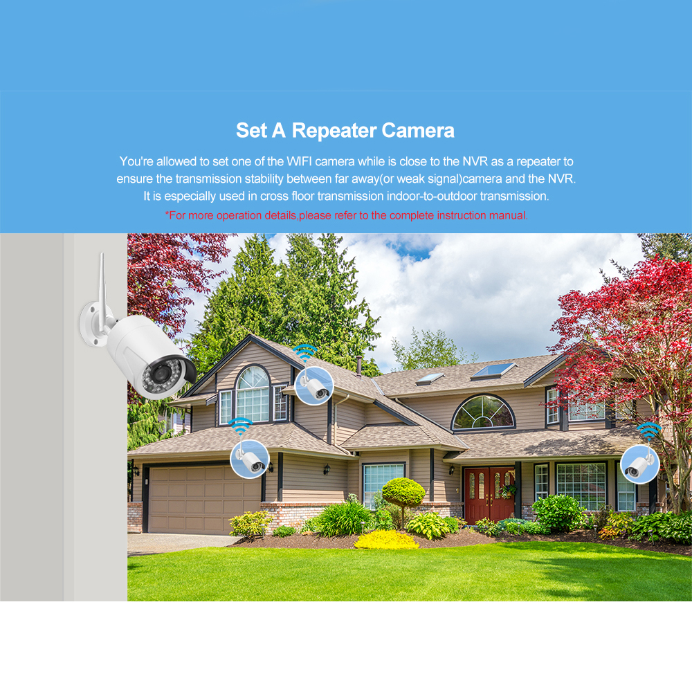 👍 UPGRADED NVR MODEL WITH DUAL WIFI : Support wireless wifi connection to modem router, without network DATA cable, Also support 4G hotspot connection.