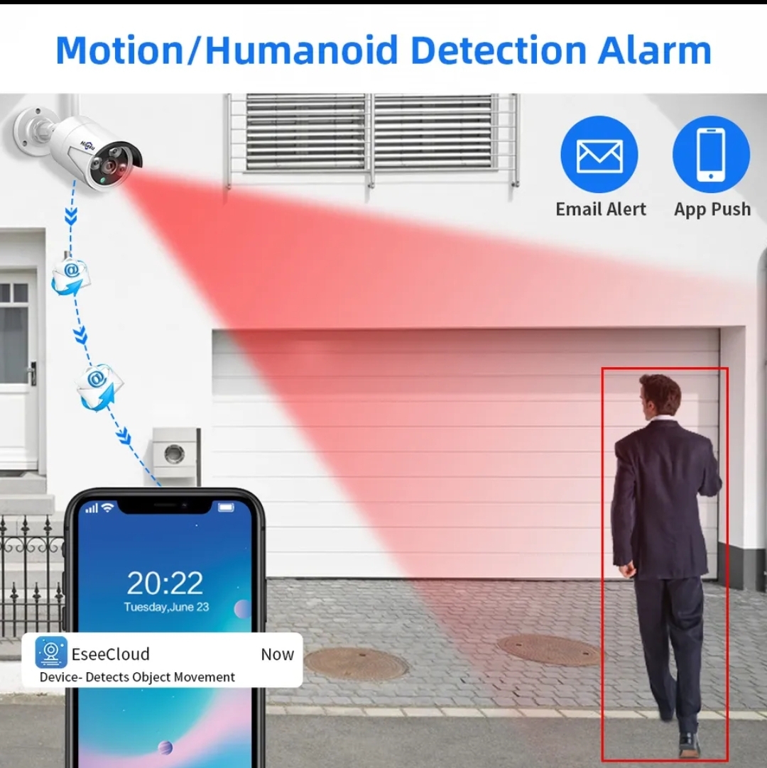 Eseecloud 4Ch 5MP / 3MP Wireless Wifi Bullet CCTV Camera Kit + 10CH Wireless NVR – Built-in Microphone & Speaker