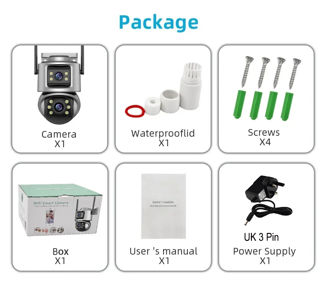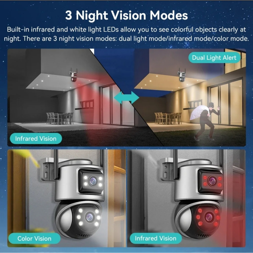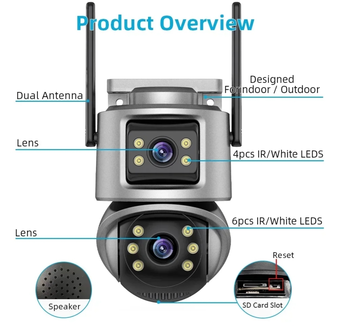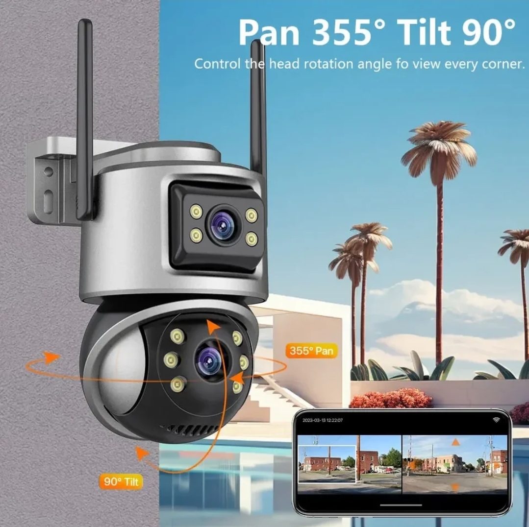 iCSee 6MP Dual Lens / Dual Screen Weatherproof Outdoor PTZ Wireless WIfi CCTV Camera – Grey