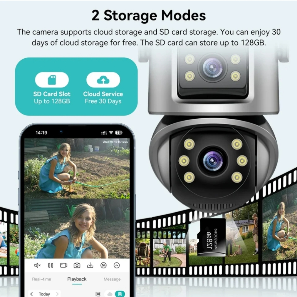 ✔ Support 2 modes recording : cloud storage/micro sd card (Max support 128GB)