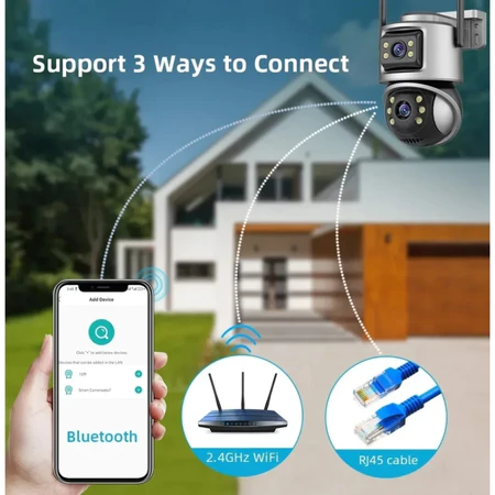 – one lens can be used for fixed monitoring, and the other lens can be used for PTZ monitoring
