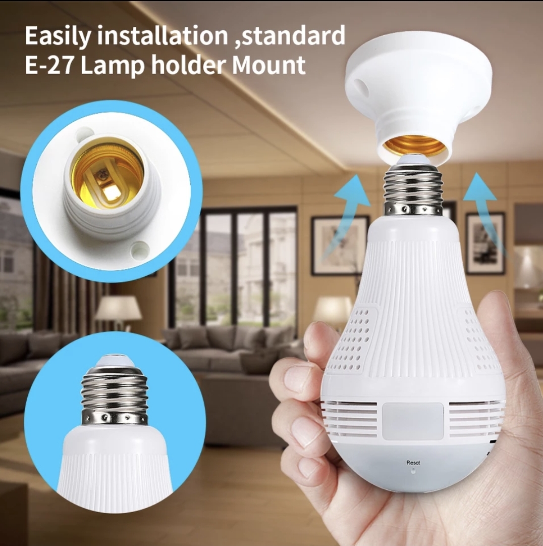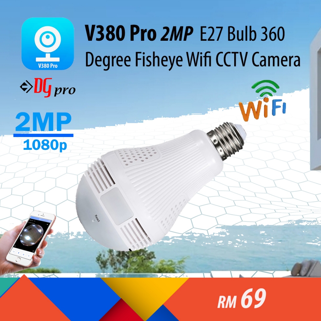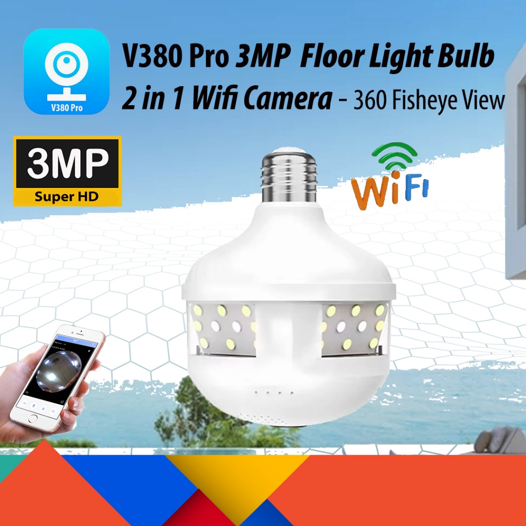 V380 PRO 2MP / 3MP 360 Degree Panoramic Fisheye Lamp Bulb Wireless CCTV Smart IP Camera