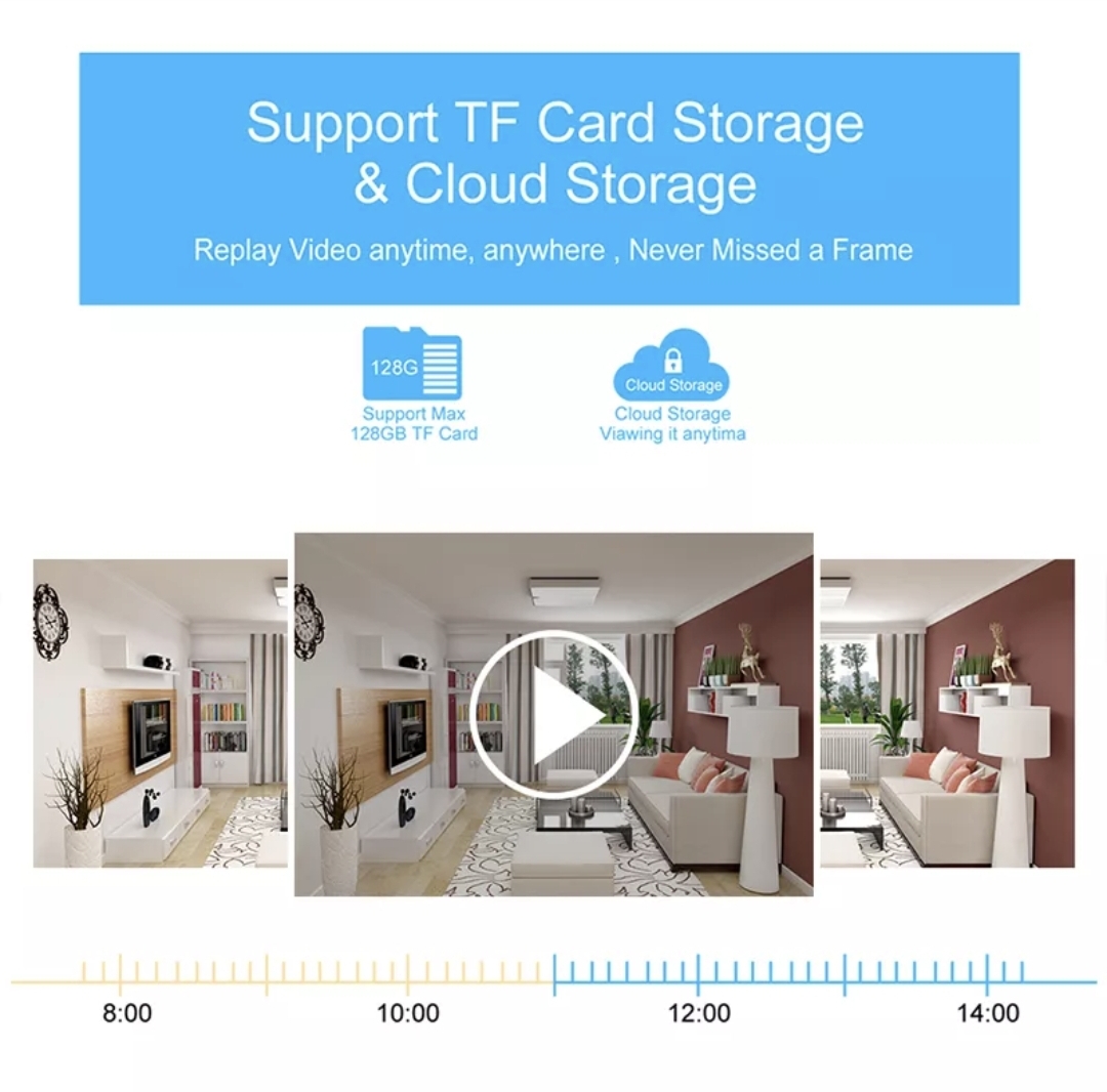 With micro SD card slot, Maximum support 128gb. Support cloud video recording