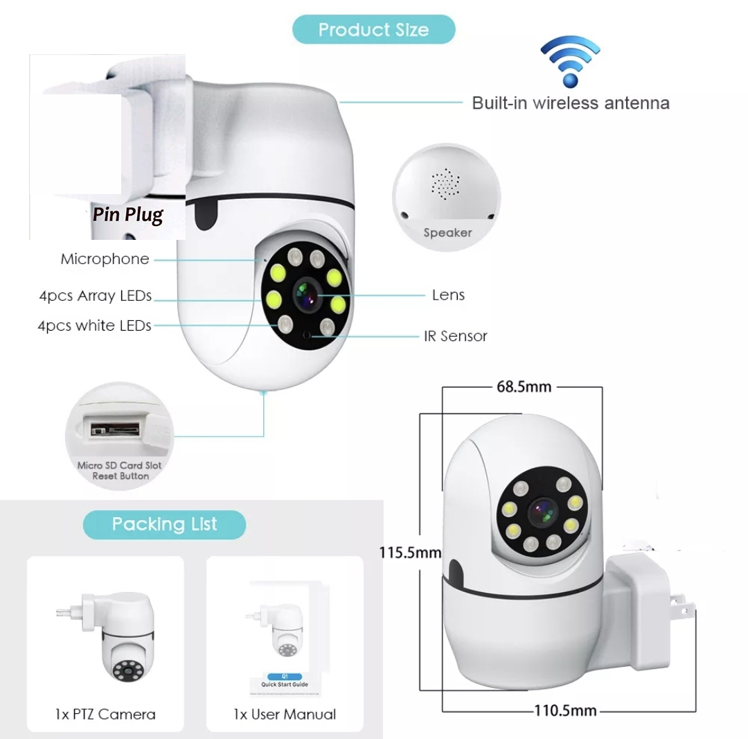 YOOSEE 2MP 1080p Full HD Wall Power Socket Type Dual Light PTZ Wireless Wifi CCTV Camera
